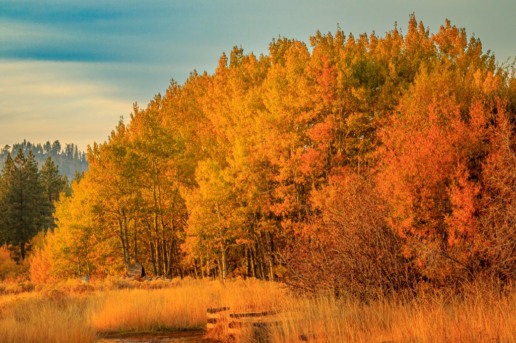 In mid-October my wife and I drove to Lake Tahoe for our first trip away from home since her surgery in early July. We try to get to the lake at least a couple of times a year but this was our first time there in the fall (usually we visit in late spring or during the summer — we are definitely not snow people). Our primary purpose was to test Billie’s travel-resilience in a familiar place and to just get away from normal every-day routine. My (in this situation, secondary) photographic purpose was to spend a bit of time seeking some fall colors to photograph and also to check out Nevada’s progress in completing some work in improving access to the Memorial Point Overlook which is (a free) part of the Lake Tahoe Nevada State Park which lines the northeastern shore of the lake along State Highway 28.