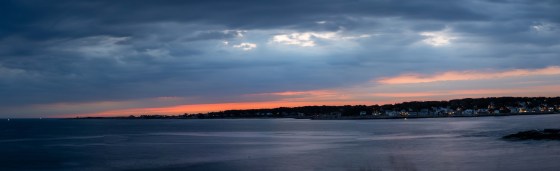 This view of an early morning sunrise over Rockport, Massachusetts, is actually composed of four separate images captured quickly one … More