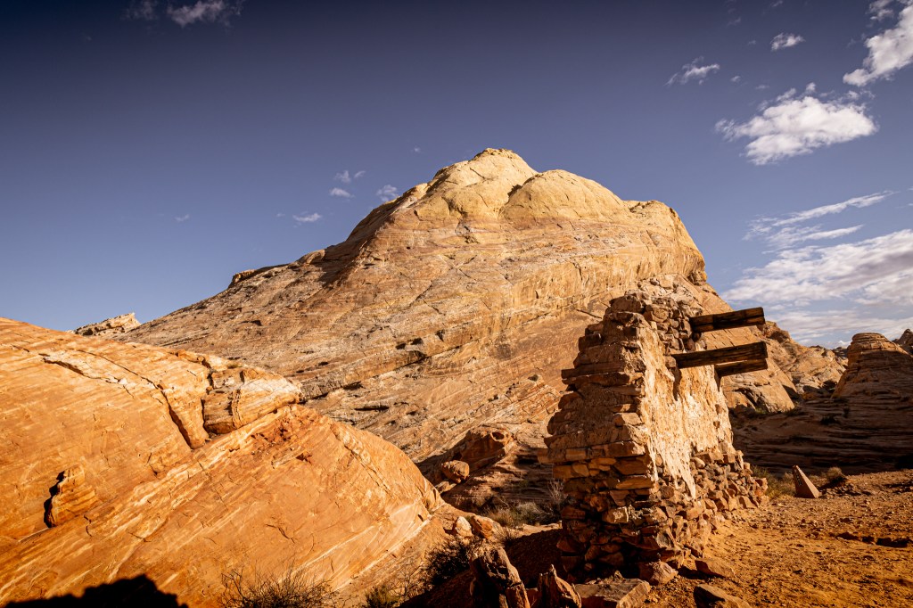 One other thing about that hike, when I reached the bottom of the White Domes Loop trail segment, I came across the following remains of a wall (1/125 sec f/11 ISO 400). I thought, “Holy cow, someone actually built some sort of structure down here in this fairly inaccessible space?”