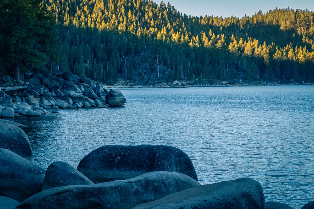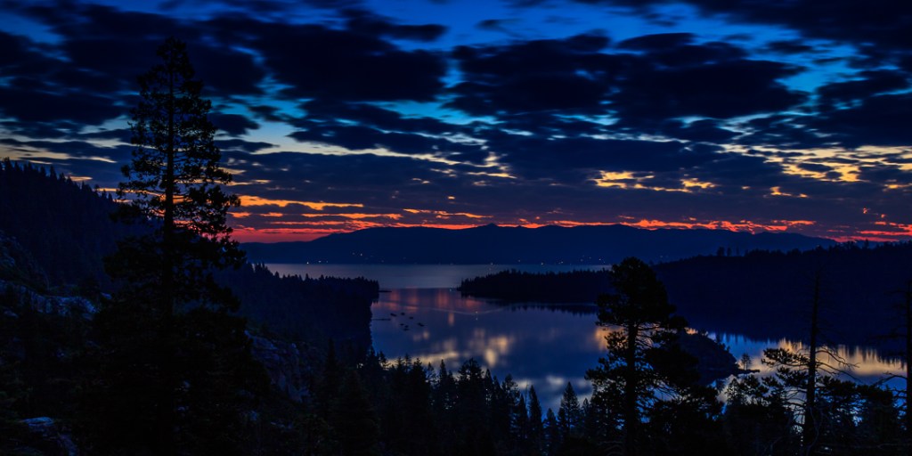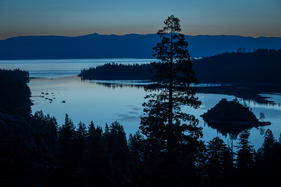 This image(1/25 sec, f/7.1, ISO 200, 75 mm) of the south end of Lake Tahoe from above Emerald Bay, was captured while on this trip at around 6 AM at the end of what is called the ‘blue hour’1 that occurs early in the morning (it also occurs in the evening).