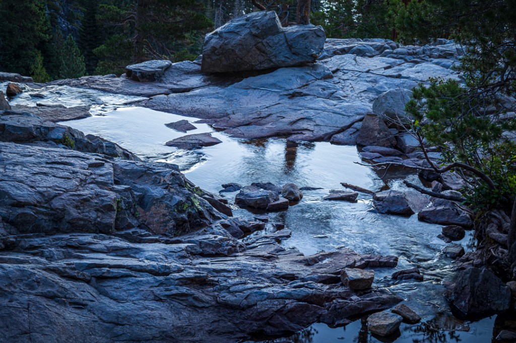 Much later, when I was reviewing the images on my computer, I noticed something that had not really registered with me while I was out shooting. And that was that the stains on many of the boulders indicated that the level of the water in the lake had dropped considerably — by at least a foot or so. This is another indication of the effect the drought is having even in the mountains. It is most noticeable in both the first and last photos in the series above.