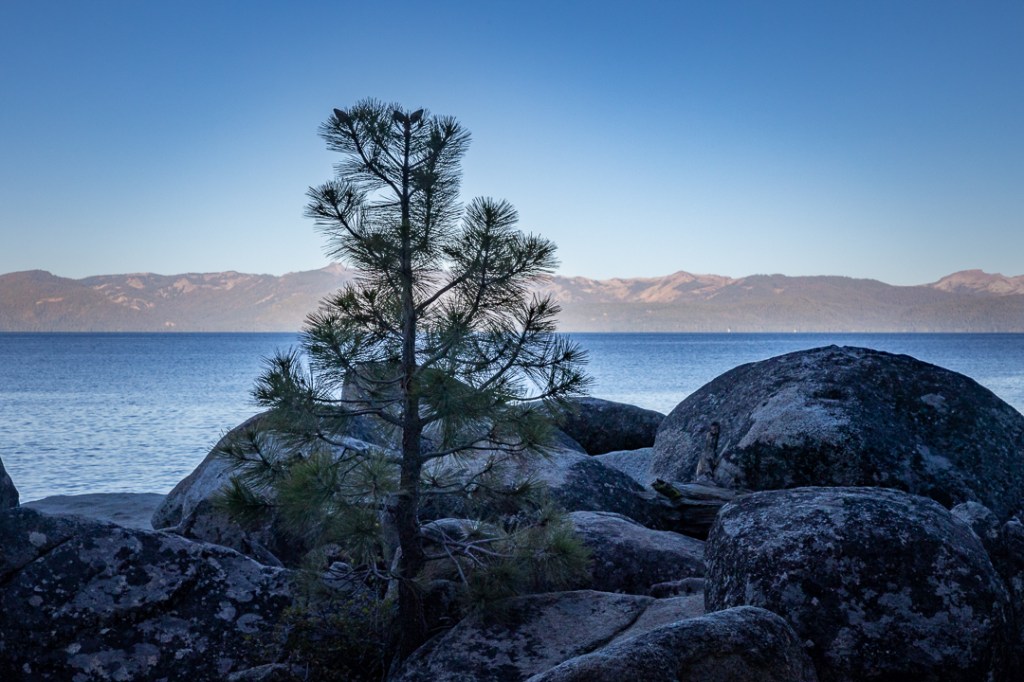 In addition to spending about an hour shooting in this area, I also ran across a young couple just enjoying the morning scenery and occasionally taking some pictures of their own, I did stop for a few minutes to talk with them (at their request I even took a portrait of them). I mentioned what had happened to my plans that morning and they told me about another spot on the Nevada side that I might want to explore called the Secret Cove. Once I got back to where we were staying, I looked it up on both Google Maps and a Topo map of the Lake Tahoe region — and decided to give it a try on my next outing. Then, after beginning to review the photos from that day, I decided that I’d earned a nap before heading out for dinner. 😴