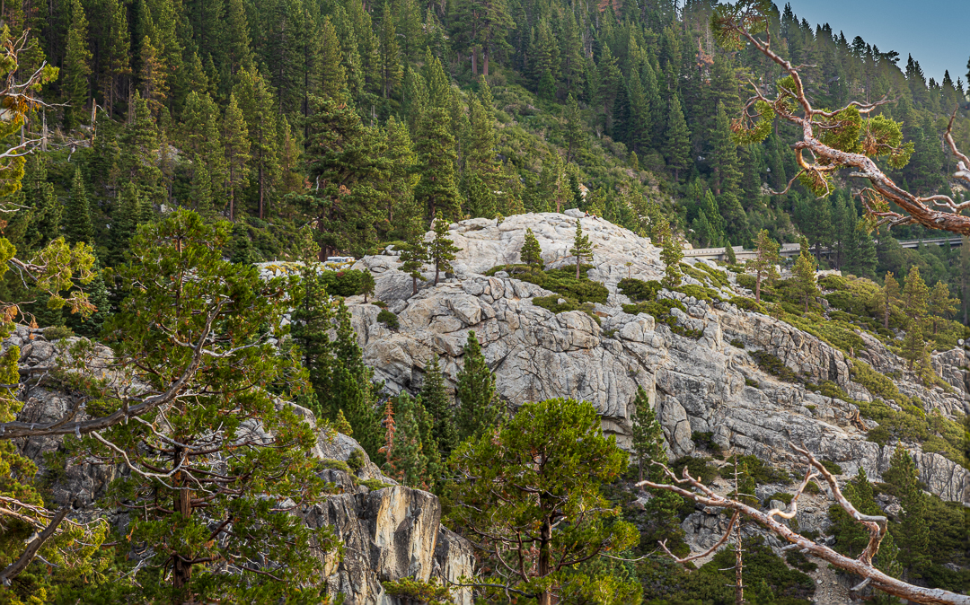 Interesting enough, to me, I didn’t notice while I was shooting (at about 6:20 AM) but when I was processing these into a single, focused photo, I noticed that some young women had climbed onto the top of that huge chunk of granite in the middle of the picture and were just sitting there, enjoying the view. At this level of magnification, you can just barely see two of them sitting up there.