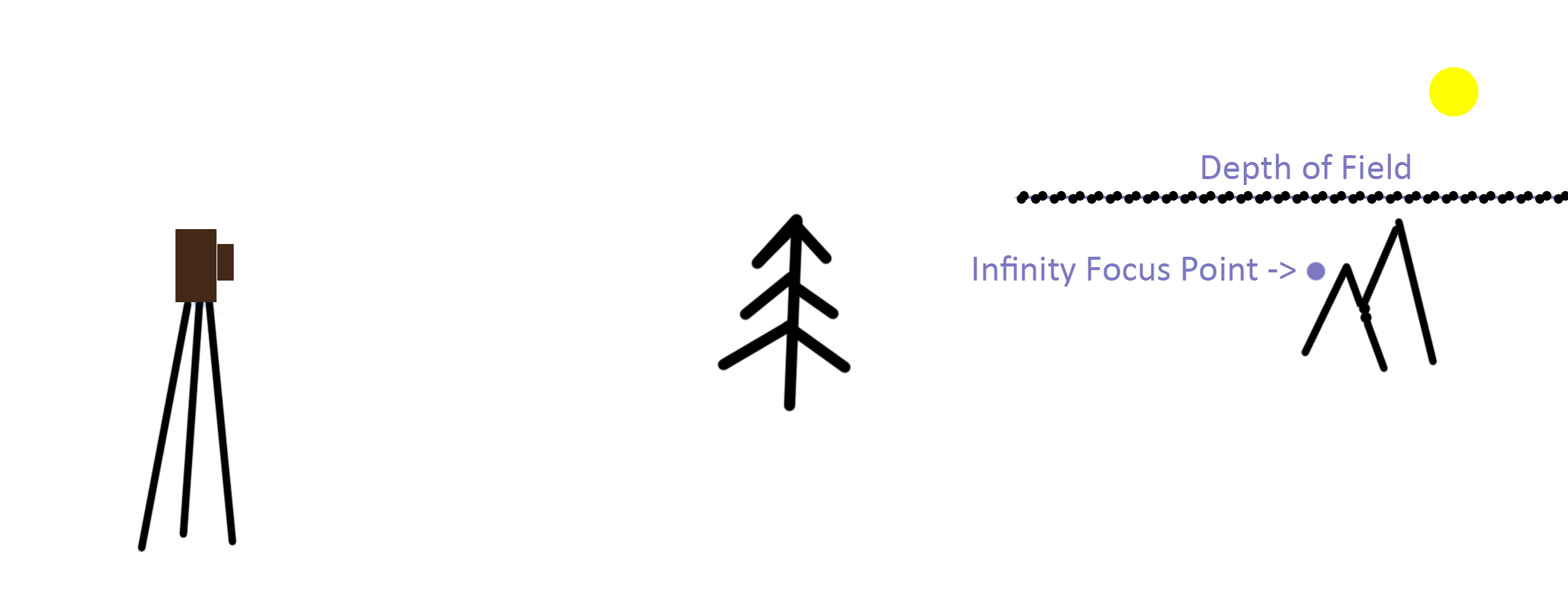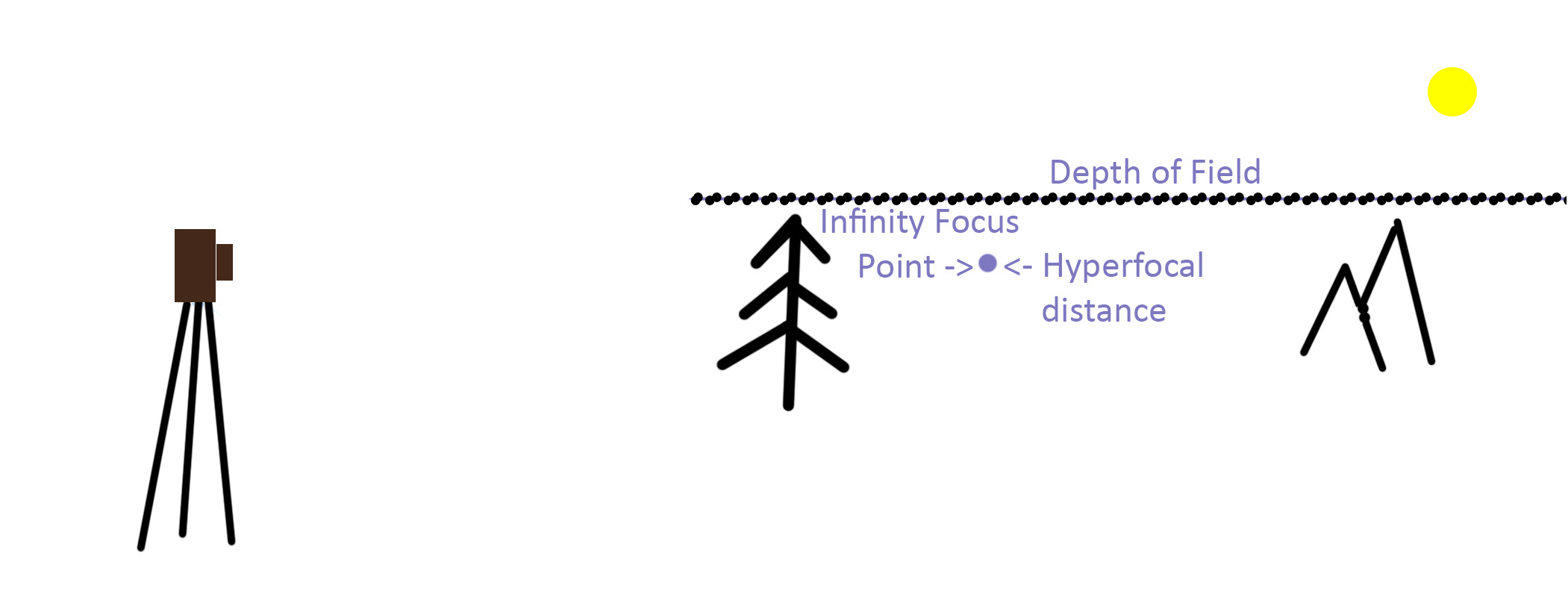 Therefore, the idea behind the hyperfocal distance is that if you can move the infinity focus point closer to the camera, everything behind it will still be in focus while a lot more of the foreground will also be in focus. The whole idea is to successfully move the infinity focus point as close to the camera as possible without the distant focus setting becoming something less than infinity.