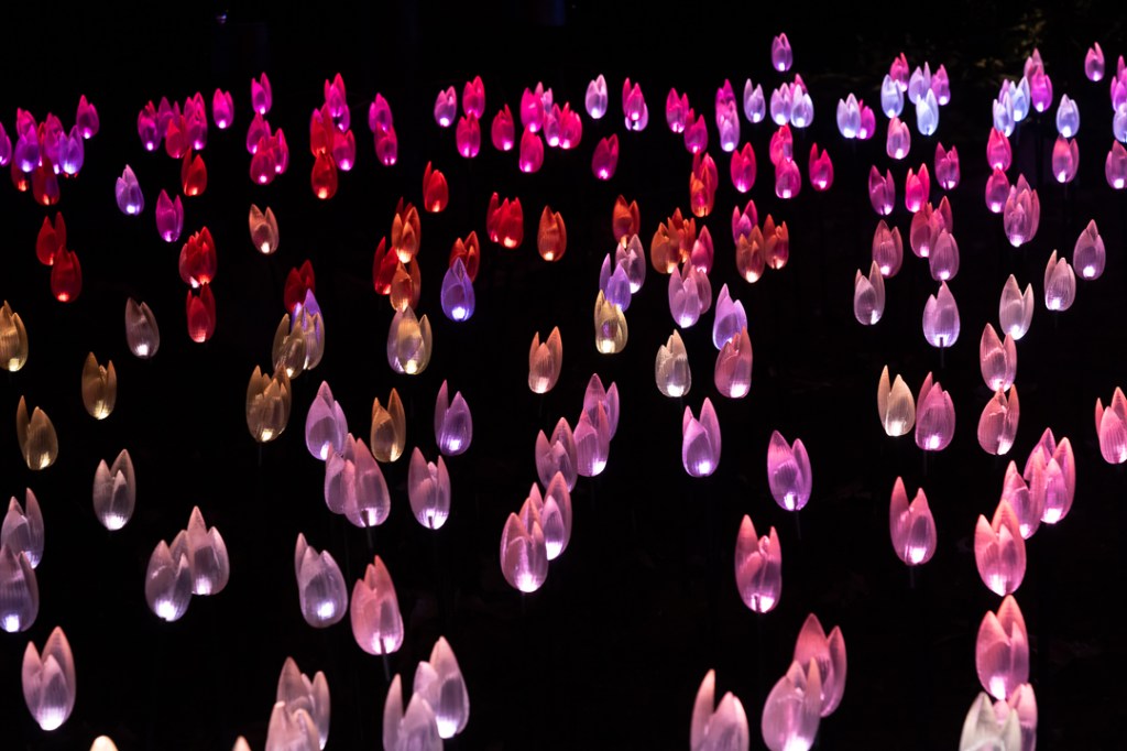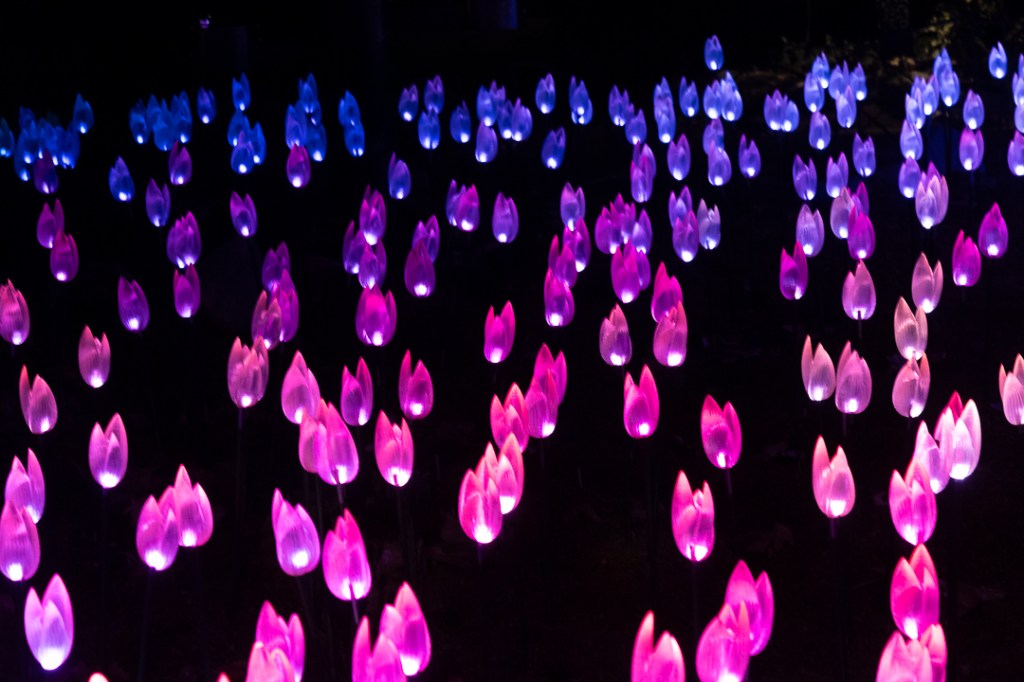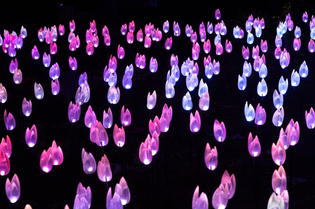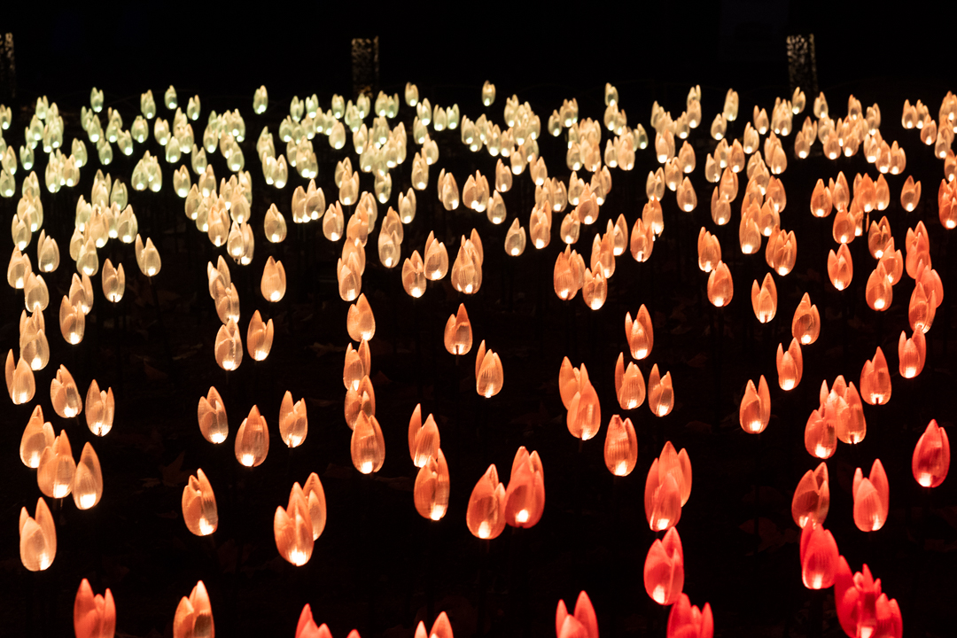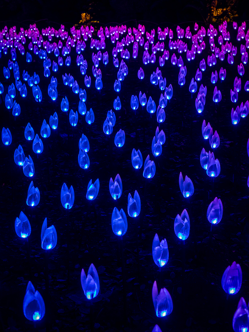 The light show was organized into separate numbered stations. I didn’t keep track of the station names or numbers but we more or less followed the normal sequence and my photos are pretty much in that order. The first station we saw was what I (mentally) named Tulip Fields (for kind of obvious reasons).