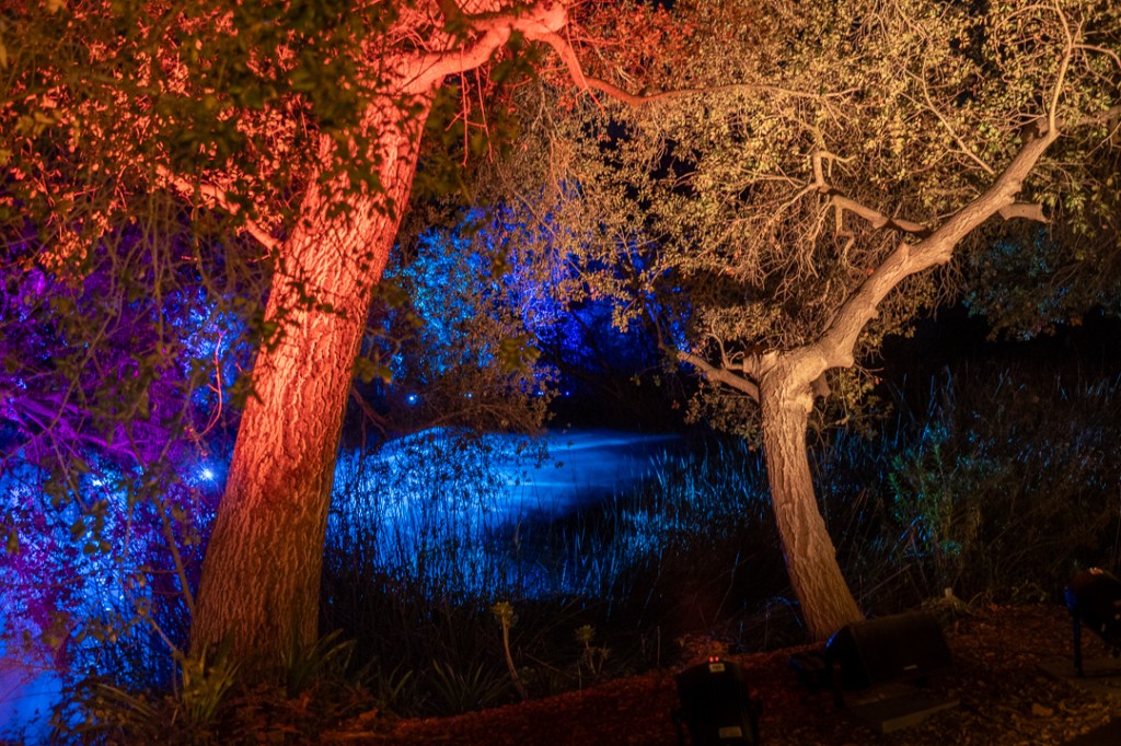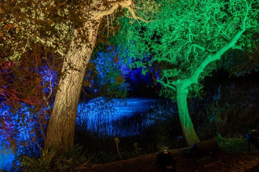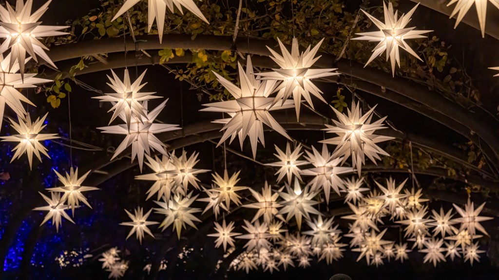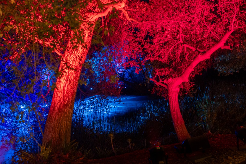 However, as a part of this visit, our daughter-in-law arranged for us all to visit a holiday lights display at Descanso Gardens in La Cañada Flintridge — and I did take my camera along. The variety and use of lights technology at this show promised to be interesting and unique. At the same time, shooting in the dark without using a tripod to stabilize the camera for night shooting (which would have been very unsafe around such large crowds) also presented some technical challenges. And that provided me with an opportunity to test some aspects of my camera that I had not spent much time on — yet.