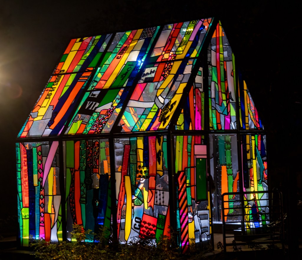 That was followed by lots of illuminated stained glass, formed into a very small house (shack). Very interesting was the photo-realistic moon, apparently modeled from detailed photographs of Earth’s actual moon.