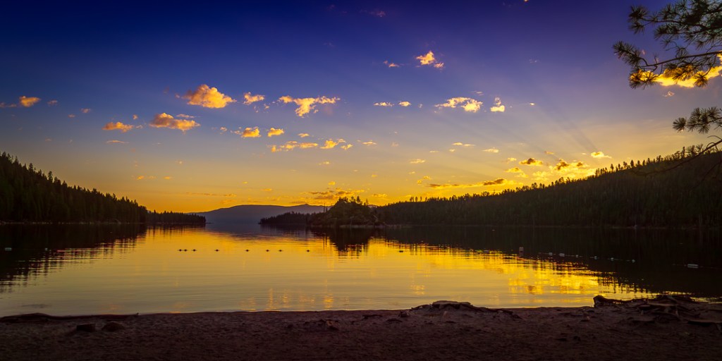 As you might expect, the first thing I thought of was a sunrise image, right from the edge of the bay. The feel of this view of the bay is quite different than most of the other shots I’ve taken from a much higher viewpoint. But I especially liked the way the sun not only illuminated the clouds but also cast a warming glow across a large portion of the sky which is subtly interrupted by the shadows of many of those same clouds to produce what some people call God Rays. Because of the angle of the morning light, Fannette Island is difficult to see, as it seems to blend in with the southern shoreline on the right.