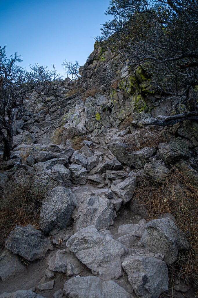 I took several photos both from places along the trail and from a kind of plateau area around the “base” of the top of the rock.