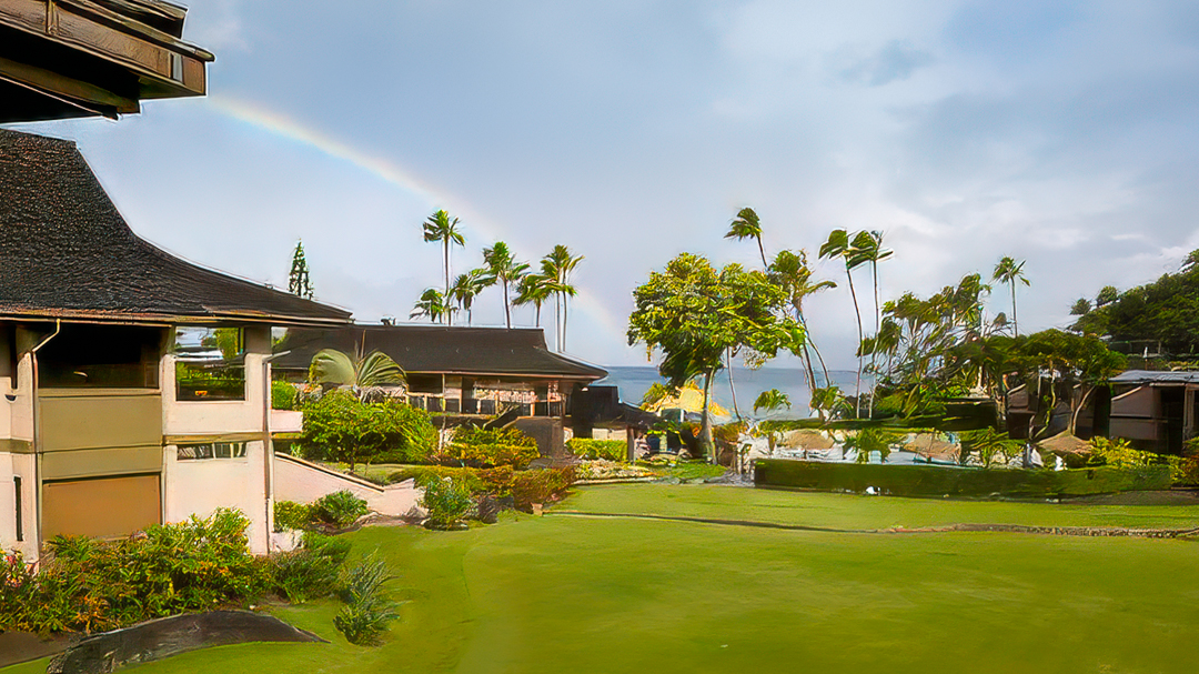 That first morning of our stay, we were just starting to enjoy our coffee latte’s when I noticed a rainbow, arching out of the ocean. We were not yet completely unpacked and my camera was still tucked away in its backpack, so I just grabbed the phone in my pocket and stepped outside onto the lanai to catch a quick snapshot before the effect disappeared.