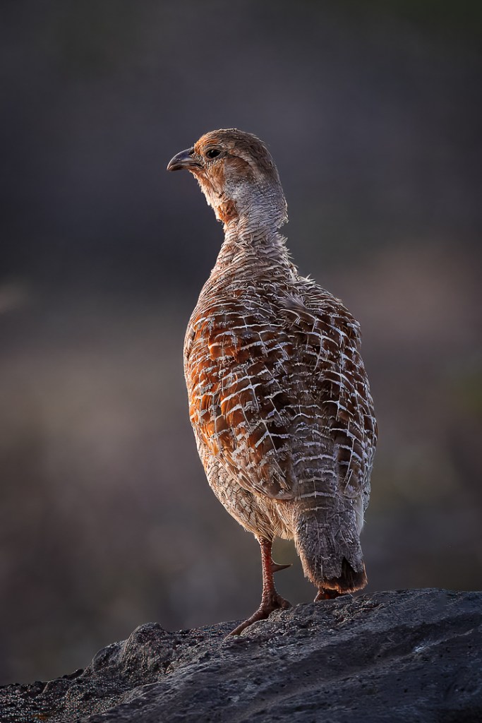 As I began to look around, searching for a photographic subject, I somehow spotted this interesting looking bird (that was definitely not a wedge-tailed shearwater). However, it seemed to be posing for me, standing on that large rock, so I took a photo of it. Later, when I was back at the resort, I asked Mike and Patti (friends from southern California that we met at Napili Kai years ago and now usually see at the resort around this time of year) if they happened to knew what kind of bird this is. And, as I hoped, they were able to identify it for us as a Grey Francolin.