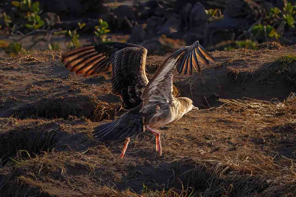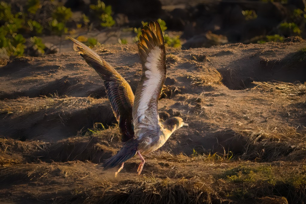 This first image that just appealed to me because it showed one of the wedge-tailed shearwater birds seemingly doing some exploring of its own. It appeared to be checking to see if there was anything else already occupying this burrow. Or maybe it was checking on a mate that might have been in the burrow incubating the egg. It even might have been checking on a chick that was not yet ready to learn to fly and seek food for itself. My shooting position was quite distant from the bird (I was utilizing all 500mm of my telephoto lens to get an image that is seemingly so close). Unfortunately, there was no path that would allow me to see over the bird’s shoulder to see into the burrow more deeply, so I’m now just left guessing (and enjoying making up possible scenarios — or anthropomorphic stories).
