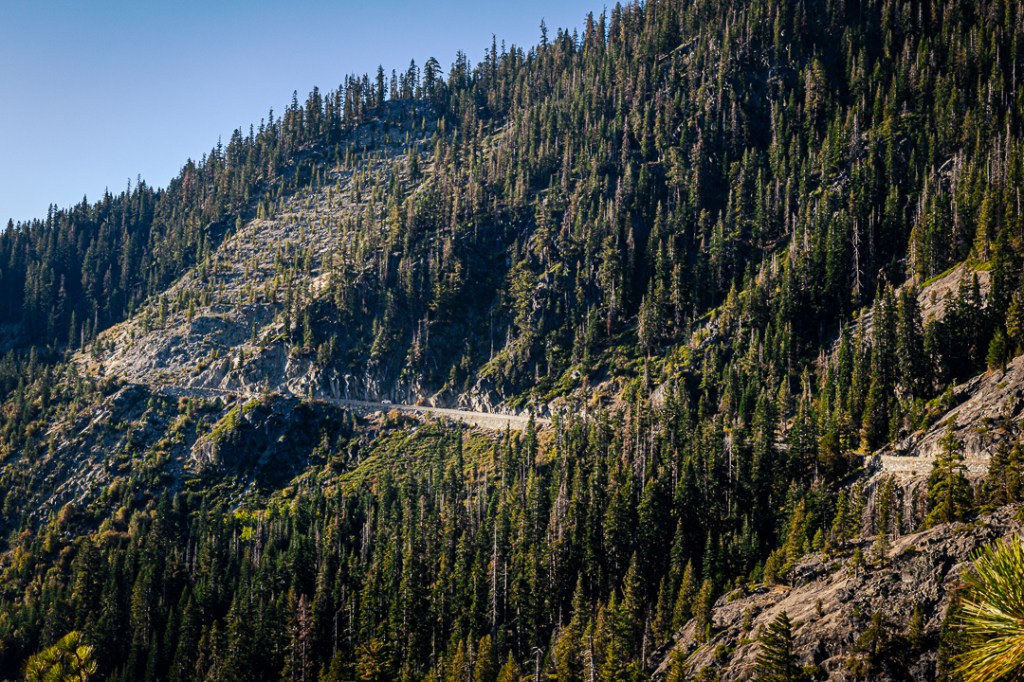 While I was there I realized that I had not taken any images of the area around which all these wonderful sites exist. You can get a sense of scale when you try to pick out the few cars on the highway that were caught in the photo below. The highway is well maintained but in this area it is quite curvey and only has one lane in each direction. We do not generally visit Lake Tahoe in the winter but I image it takes a very careful and experienced snow driver to navigate it even when it is plowed and open. Also, like most country roads, much of it is not artificially lighted. I do know what it is like driving it in the dark.
