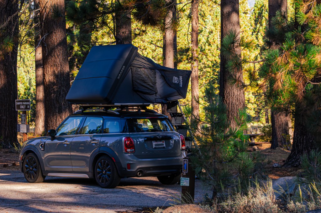 That boat and skier made me realize that I was already very close to the northern edge of Fallen Leaf Lake. I decided I’d done enough exploring for the day and kept my eyes open for another trail branch that would begin to lead me more toward the east and back to my car. Before long I could see that I was approaching the road on the edge of Fallen Leaf Campground and knew I was getting close to the end of the day’s hike. I also noticed this unusual campervan made out of a portable sleeping device fastened to the top of a Cooper Countryvan (I obscured the license plate number in this photo to protect the camper’s privacy).