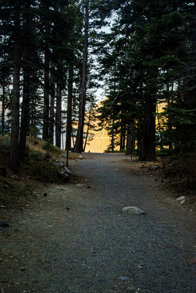 Two days after my initial exploration of Fallen Leaf Lake, I was back, arriving at nearly my same parking space on Fallen Leaf Lake Road sometime between 6:30 and 7 AM. I grabbed my backpack of camera gear, hung my camera from my neck (this time with the more versatile 35-105mm lens attached), and followed the same trail I had two days earlier. But after a bit of start up hiking, I opted to connect to another trail/road that more directly led to the edge of the lake close to the northern end. I arrived to take this photo (40mm, 1/80 sec, F/16, ISO 12800) at around 7:15 AM.