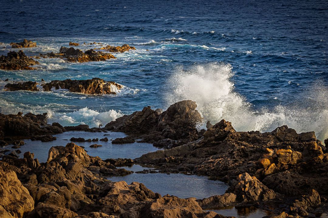 I captured this seascape image of waves crashing near the tidepools at Hawea Point along the Kapalua Coastal Trail on West Maui while spending nearly all of my photographic time on this trip trying to obtain pictures of birds (123mm, 1/2000 sec, f/4.5, ISO 800)